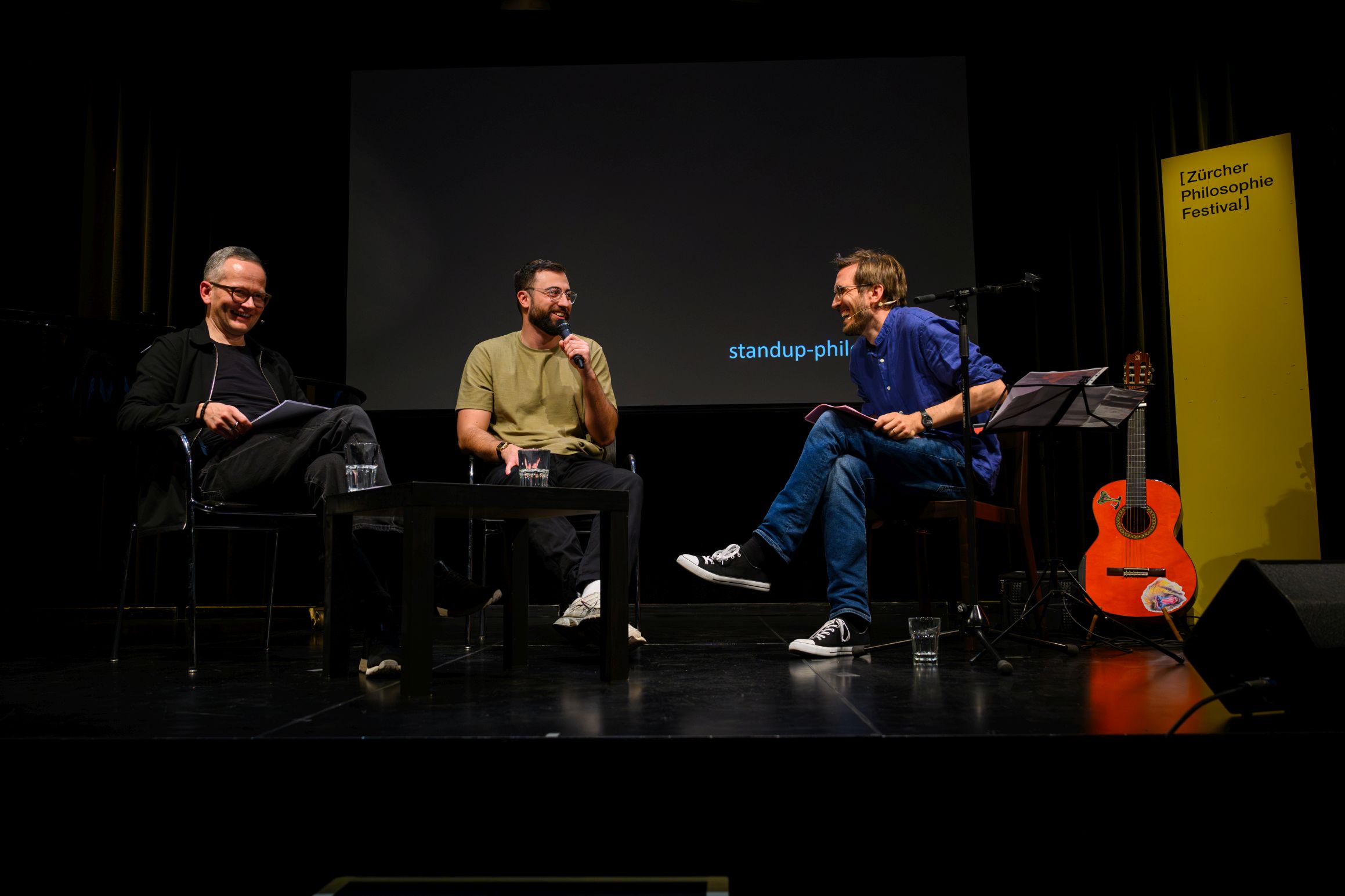 - Zürcher Philosophie Festival 2026: Rayk Sprecher, Sven Ivanić, Yves Bossart © Maria Brunner